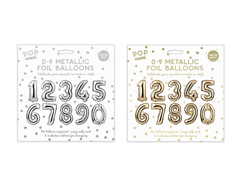 Each pack contains 10 individual balloons, each number from 0 to 9, with a durable foil construction containing no latex, and measuring H38cm approx when inflated.