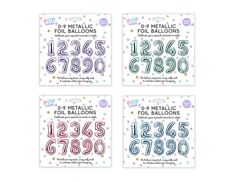 Each pack contains 10 individual balloons, each number from 0 to 9, with a durable foil construction containing no latex, and measuring H38cm approx when inflated.