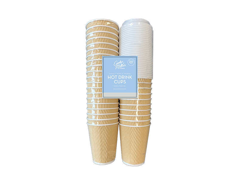 Each cup is constructed using 530 GSM PE coated board, kraft ripple paper and features a removable lid with a drinking hole.