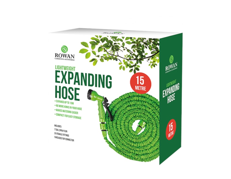 The Expanding Hose Set comes complete with a 7-dial spray gun with multiple settings, two female fittings and a threaded tap connector. The hose is compact and easy to store without kinking.