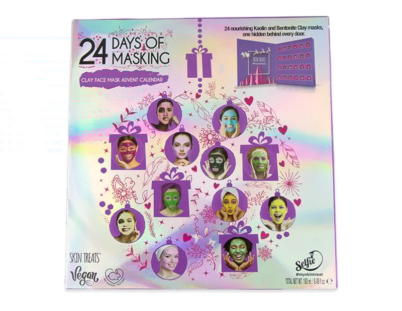 24 nourishing kaolin and bentonite clay masks, one hidden behind every door to purify and moisturise your skin for a renewed and rejuvenated appearance.