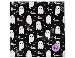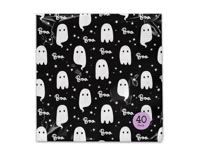 Each pack comes with 40 3-ply paper napkins printed with a black and white ghost design.