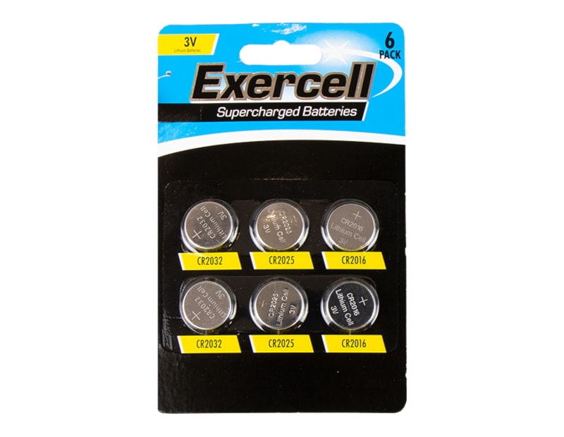 Pack of six lithium (3V) coin cell batteries, suitable for a wide range of appliances.