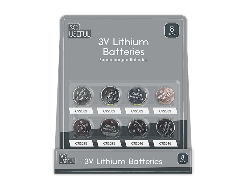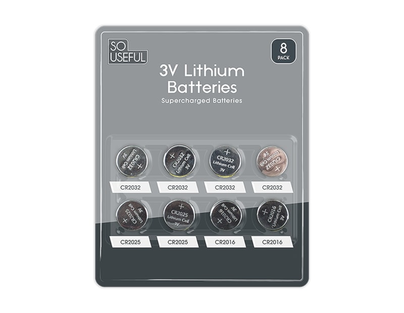This pack of 3V Lithium Batteries contains eight individual supercharged batteries that offer long lasting power and endurance. Suitable for use in calculators, watches, remotes controls and much more.