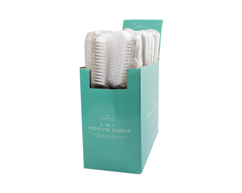 These 4 In 1 Pedicure Paddles offer total care for feet, leaving them feeling smooth and super soft. The paddle features a bristle brush surface, a pumice stone section and two strengths of foot file.