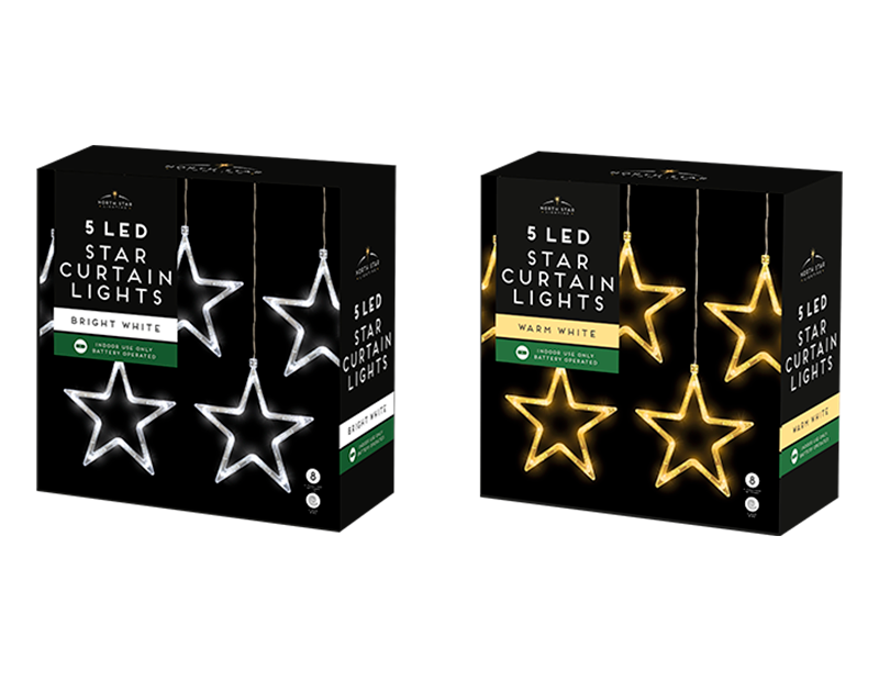 New for this year's Christmas collection are these 5-star curtain lights with a total length of 3.6m with 18cm between each light. Each star light measures 18cm (W) with 10 bulbs per star.