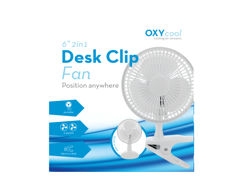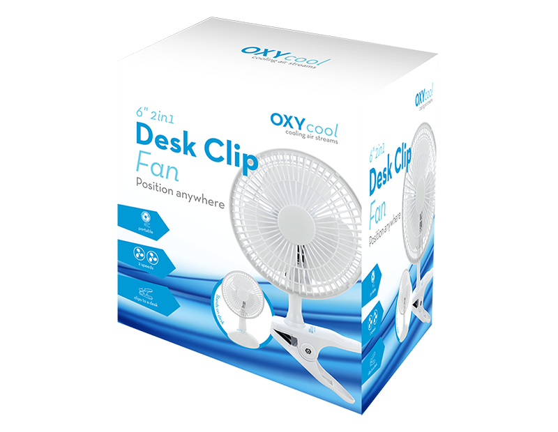 This handy 6-inch Desk Clip Fan is perfect for keeping cool in the home or office in warm summer months. The fan is mains operated and features two different speeds which are set by controls on the base. The base of the fan features a strong clip that can be securely attached desks and tables.