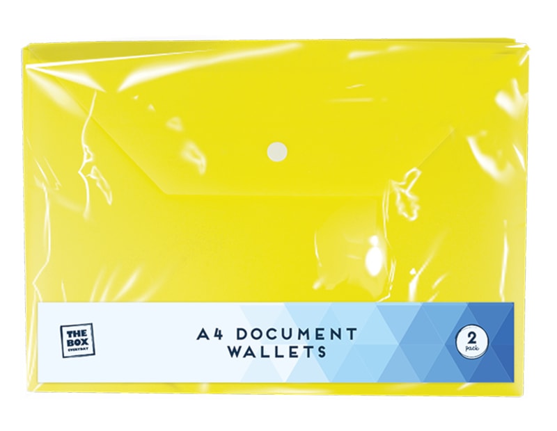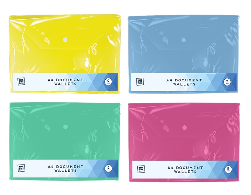 This pack of A4 Document Wallets contains two plastic wallets measuring 22.6cm x 32cm.