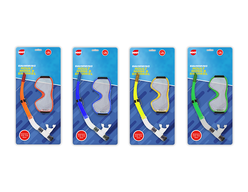 These adult mark and snorkel sets are ideal for swimming, aiding the user to see and breathe underwater. Perfect for use in the sea, in pools and other bodies of water.