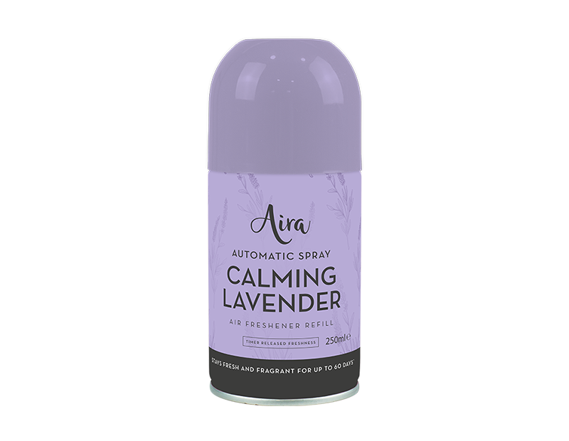 These air fresheners are designed for use with automatic dispenser units for timer released freshness. This 250ml refill is 'calming lavender' scented and helps to keep rooms fresh and fragrant for up to 60 days.