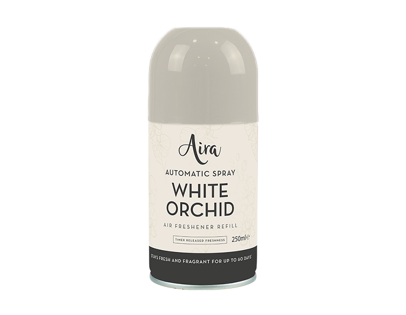 These air fresheners are designed for use with automatic dispenser units for timer released freshness. This 250ml refill is 'white orchid' scented and helps to keep rooms fresh and fragrant for up to 60 days.