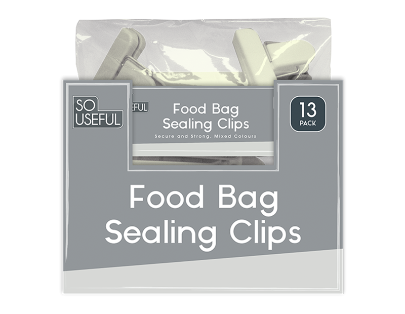 These bag clips are designed to help keep contents fresher for longer. Each pack contains an assortment of 13 sealing clips. Each with rectangle and T-shaped clips for a variety of food and uses.