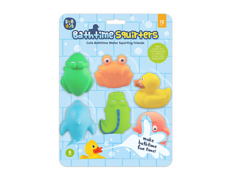 Each pack of bathtime squirters comes with six different aquatic animals in bright colours and fun shapes to help stimulate a childs visual development.