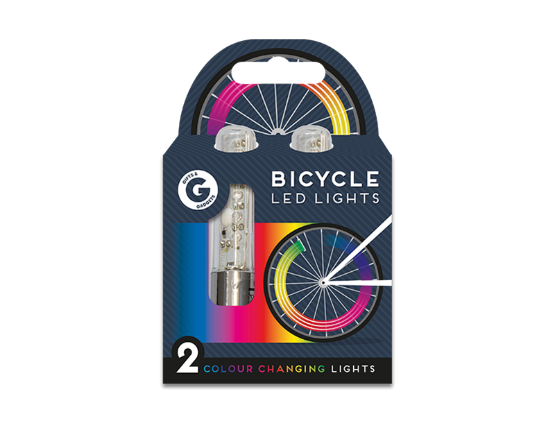 Each pack comes with two colour changing LED lights to attach to the wheels of a bicycle. Not only will these lights make the bike more visible, they will create a cool light show as the wheels spin!