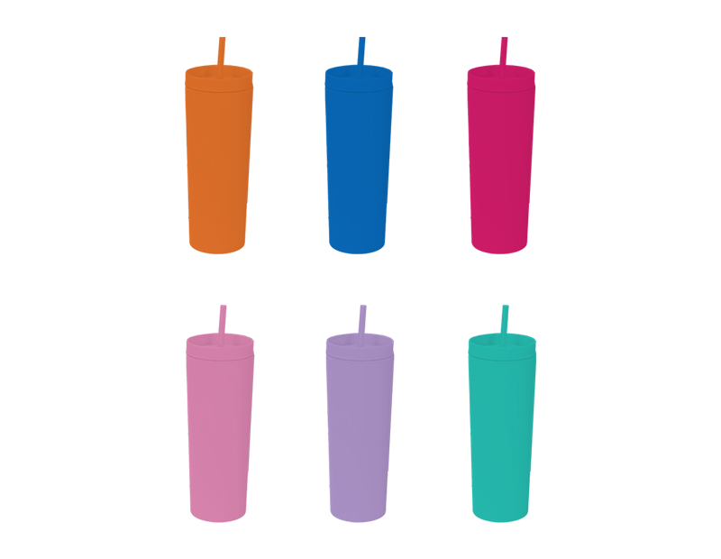 Each cup stands 21cm tall with a top diameter of 7cm and a 25cm long straw. Available in six assorted block colours, these cold cups would make a great gift year round.