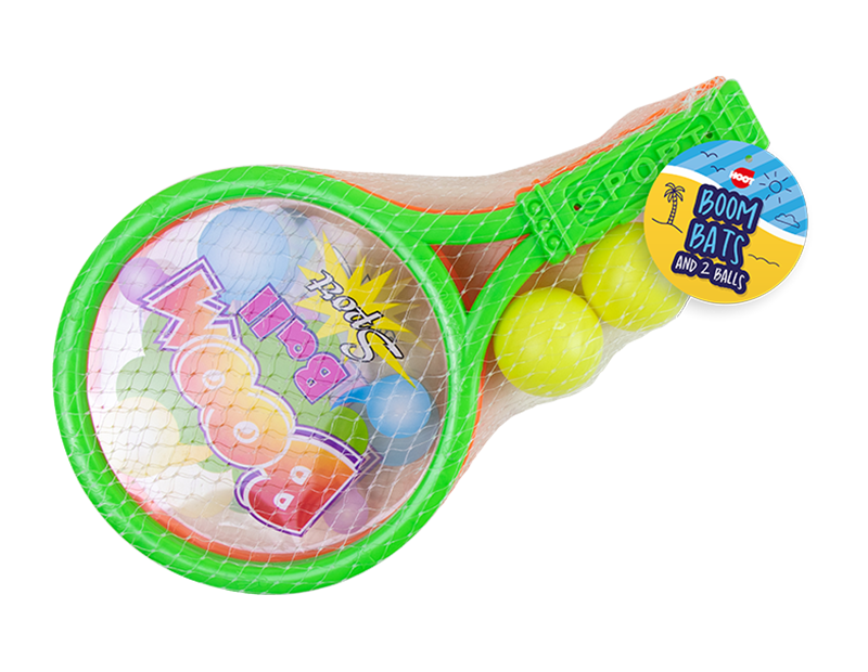 Each set comes with two individual rackets, and two balls. When hitting the ball, the racket will make a loud boom sound. Suitable for ages 3 years +.