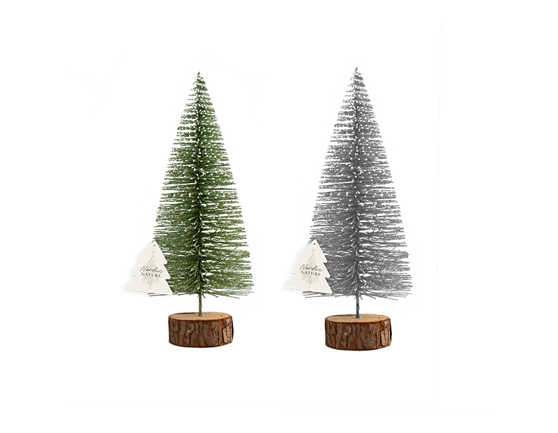 The bottle brush shape of this Xmas Tree Decoration - further enhanced by its snowy tipped 'branches' and a wooden base - gives it a strong resemblance to the traditional Christmas fir.