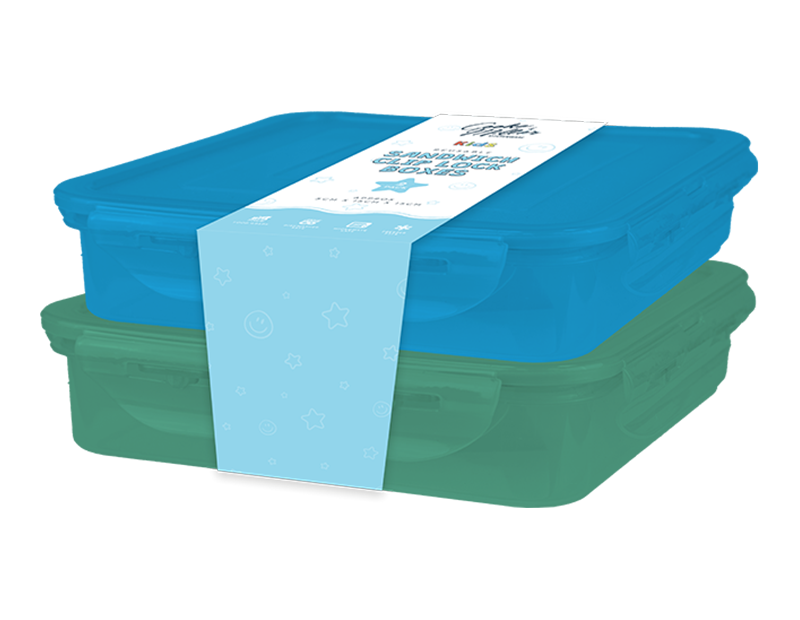 This pack of sandwich boxes comes with two individual blue and green boxes that are perfect for kids lunch boxes, or storing food at home. Perfectly shaped and sized for sandwiches and other lunch items.
