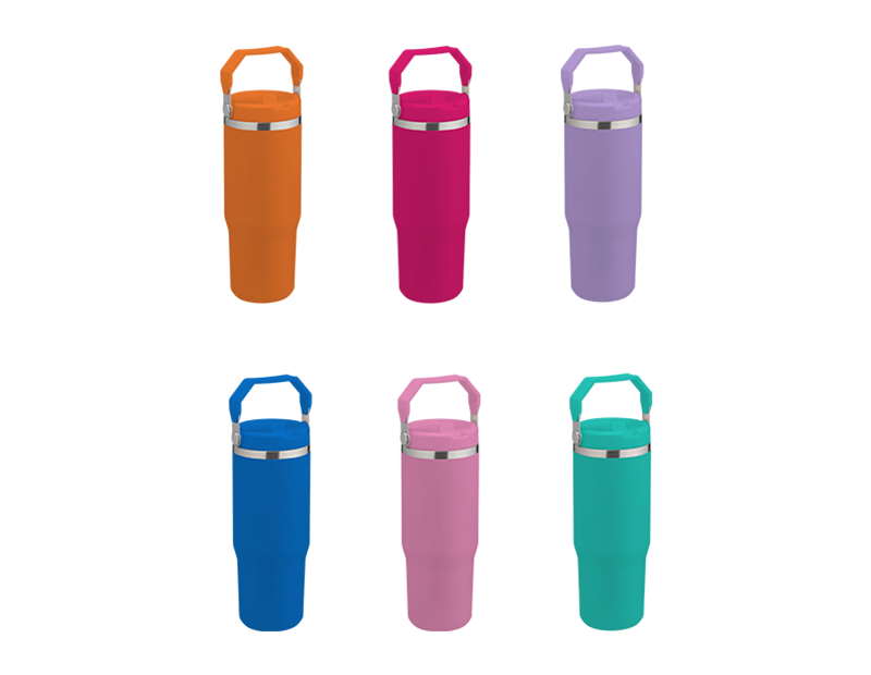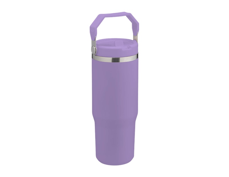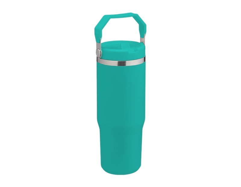 Bright Double Walled Drinking Tumbler With Handle And Flip Straw 890ml