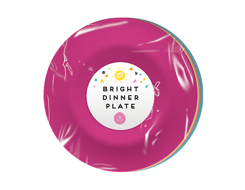 Enjoy the summer party with these brightly coloured plastic dinner plates. Each plate measures 25cm in dia with there being four in a pack!