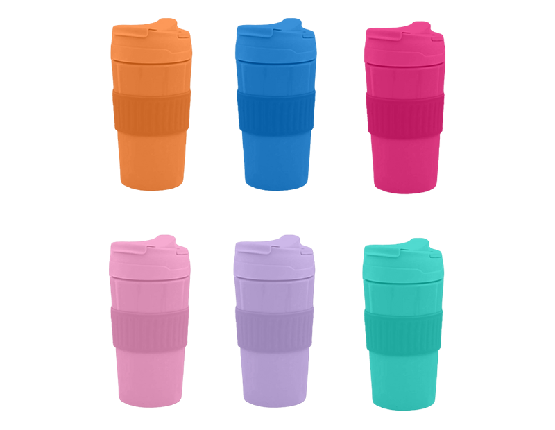 These reusable travel tumblers are ideal for using at home, in the office or taking on the go. Each tumbler can hold up to 600ml of hot or cold beverages, featuring a fold away straw and a drinking hole, as well as a heatproof holder to protect hands during use.