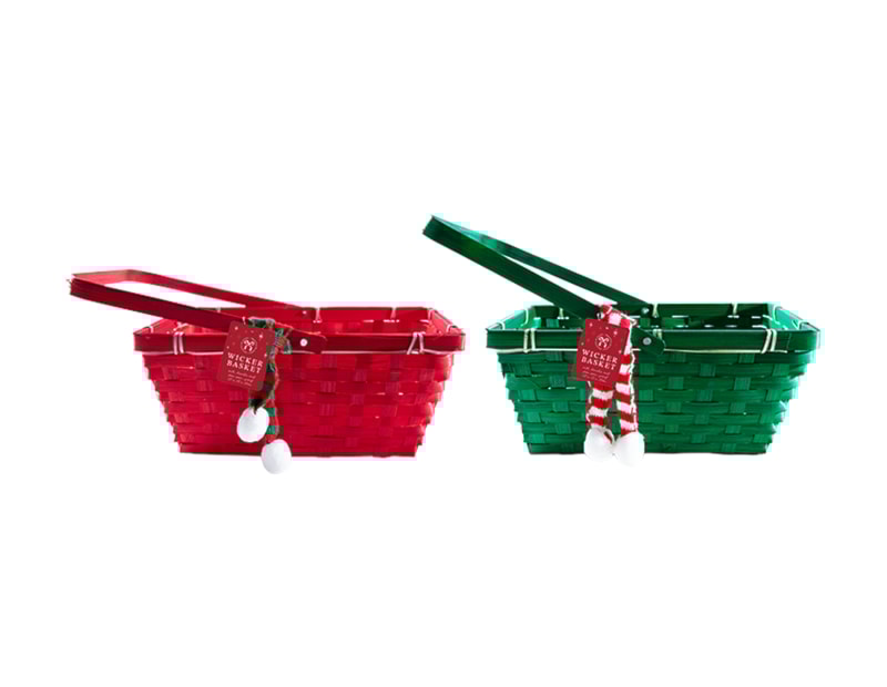 Featuring a classic wicker design with a red fabric trim and white stripe detailing around the edge, this hamper is ideal for showcasing Christmas gifts, food hampers, and seasonal displays. Its generous size makes it perfect for filling with festive treats, making it a must-have for Christmas gifting and merchandising.