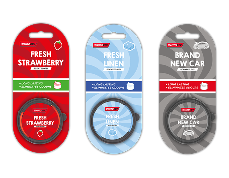 These gel car air fresheners are great for eliminating unwanted odours. Simply remove from packaging and pull back the scent control tab, then place is a secure location.