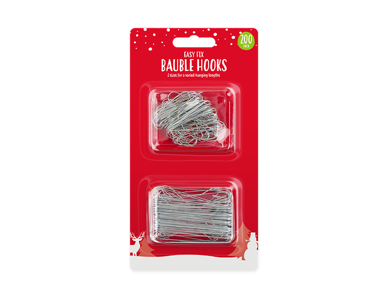 This pack of Christmas Bauble Hooks contains two hundred individual hooks in two assorted sizes that offer a variation of hanging lengths.