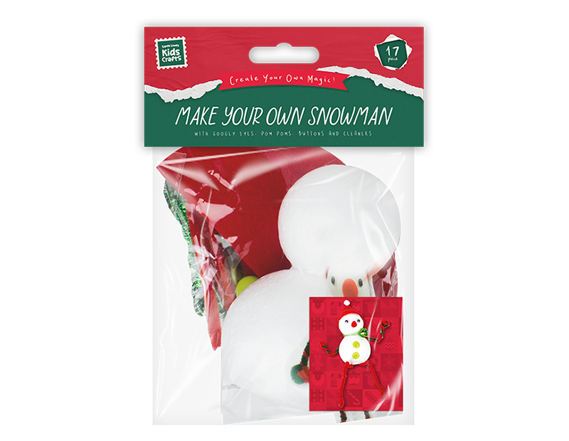 This Christmas Craft Snowman contains a polystyrene snowman and an assortment of accessories that enable the user to create a fun 3D snowman character that can be used as a Christmas decoration.