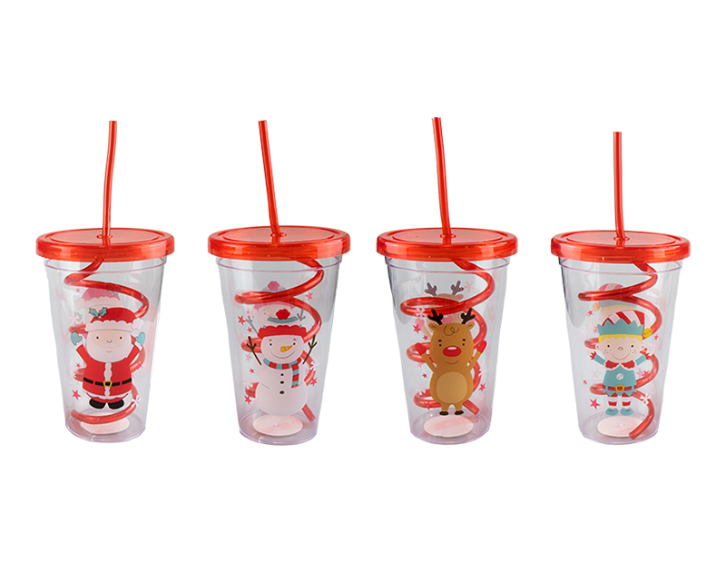 These Christmas Cup & Twist Straws are constructed from food safe plastic and feature a festive printed design on both sides of the cup.