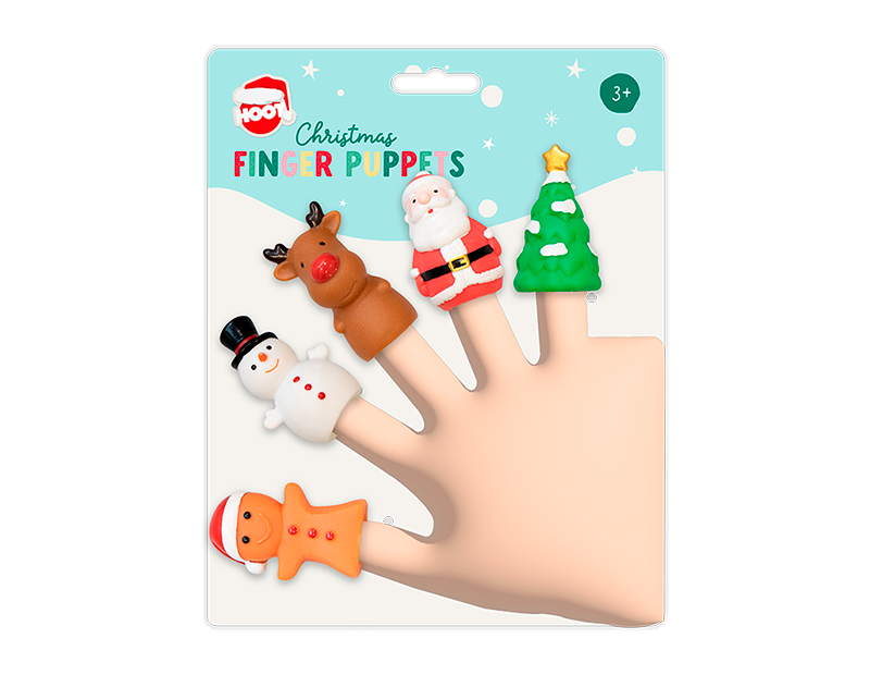 Each pack comes with five different Christmas characters, a gingerbread, snowman, reindeer, santa and a christmas tree. Perfect for story telling, with one puppet for each finger.