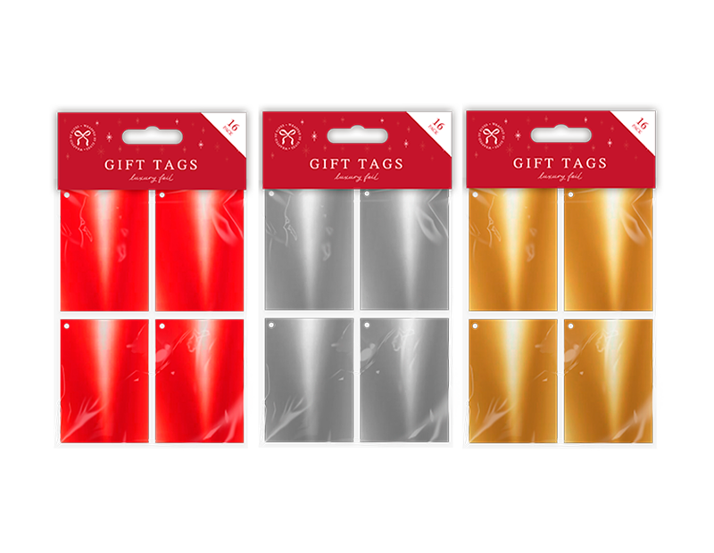 This pack of Christmas Foil Tags contains sixteen individual tags that measure 6.8cm x 4.9cm (when folded) and feature a plain metallic foil outer surface with a plain white inner.