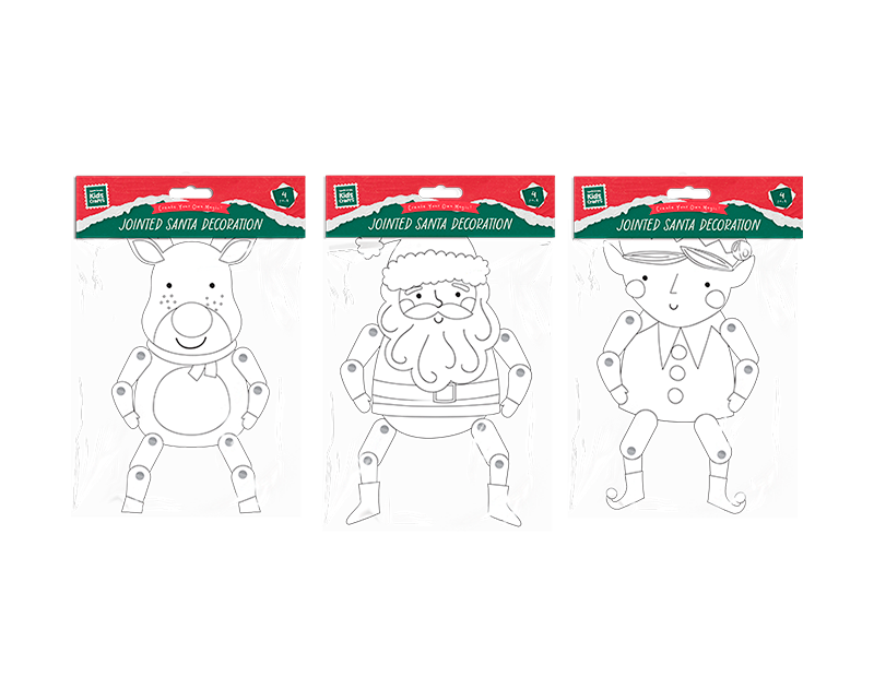 Colouring your own Christmas card decorations are a great way to get kids excited for Christmas. Each pack includes four Christmas characters. The jointed eyelets allow the character's arms and legs to be manoeuvred into the desired place. A blank canvas for kids to customise their characters how they wish.