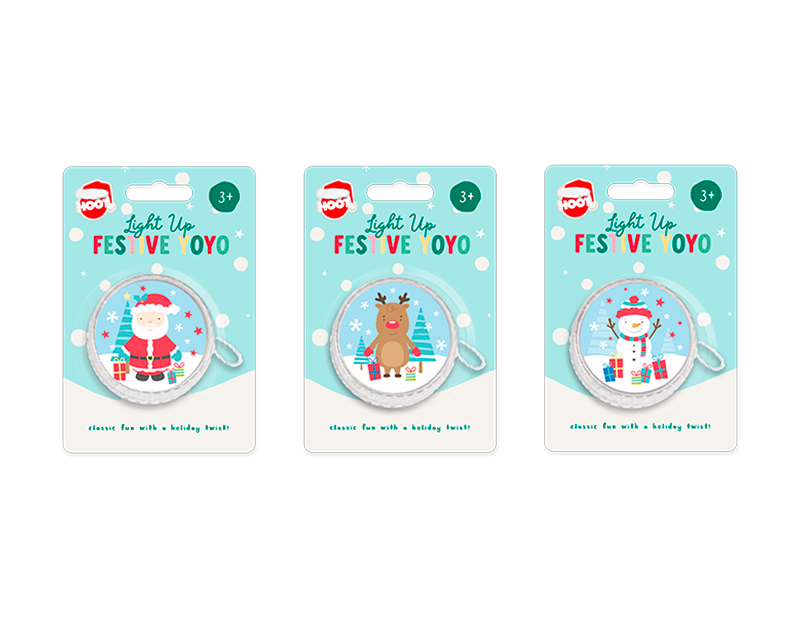 Each YoYo has a fun christmas themed printed design available in three assortments: snowman, reindeer and santa.