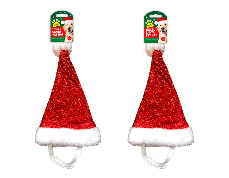 Dress pets up for Christmas with this cute tinsel Santa hat. Fun for parties, winter walks and dressing up on Christmas day.