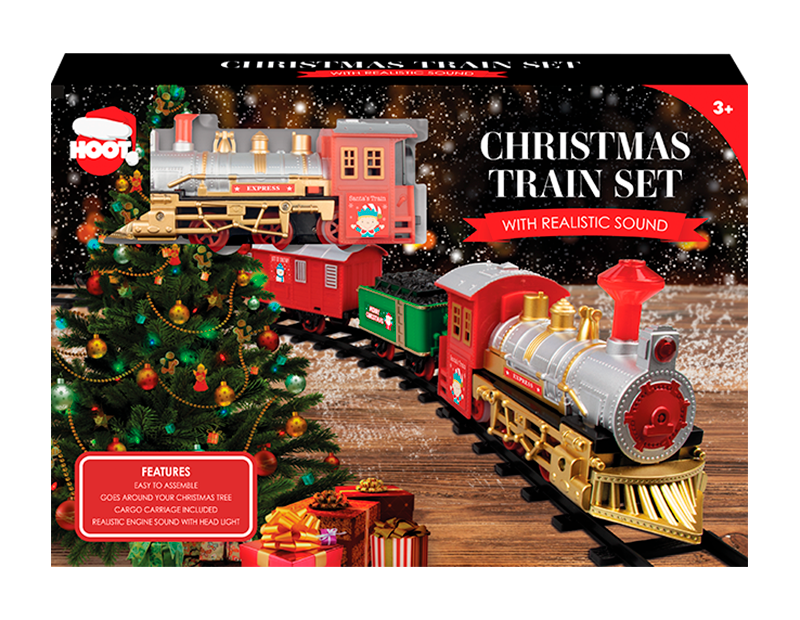 Ideal for placing aorund the Christmas tree, the train set is easy to assemble and features cargo carriages, festive colours, a realistic engine sounds and working head light. The track can be customised with the 10x large track pieces.
