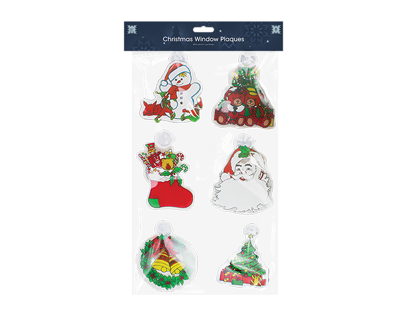 This pack of Christmas Window Plaques contains six individual Christmas themed plaques that can be applied to glass windows and doors.