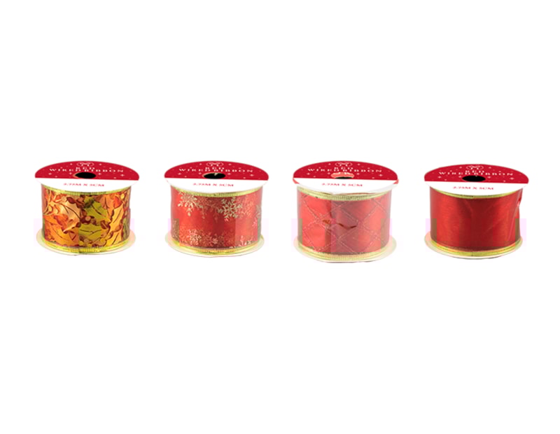 Christmas Wired Ribbon Red 5cm x 2.75m CDU