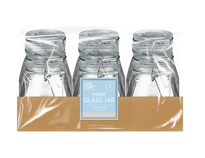 These mini glass jars have a clip lock fastening and hold up to 50ml each. The clip lock fastening has a silicone seal to keep it airtight and keep any stored products fresh. Perfect for herbs and spices.