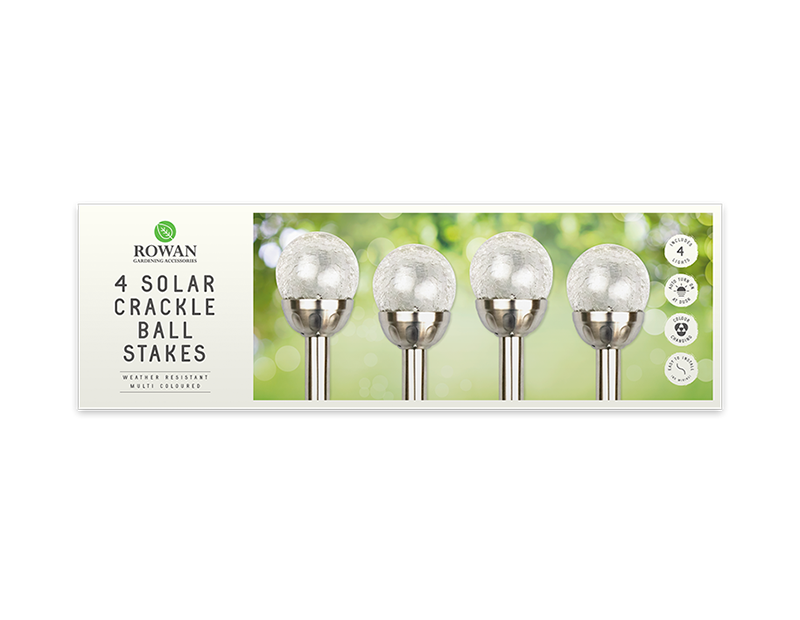 These solar colour changing lights features a crackle clear ball on a stainless steel pole, great for use in garden pathways.