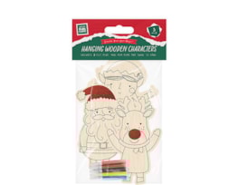 These colour-in wooden hanging characters can be brought to life through colouring in and decorating. Each pack contains three assorted characters including 5 felt pens, mini pom-poms and twine to hang.