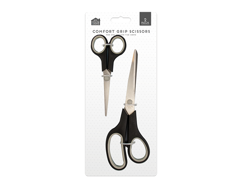 Each pair of scissors feature stainless steel cutting blades and is complete with comfortable rubber grip handles. Idea for cutting through paper, fabric and other general uses around the home.