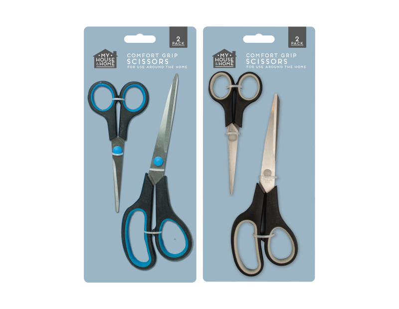 This pack of Comfort Grip Scissors contains two pairs of scissors in two assorted sizes.