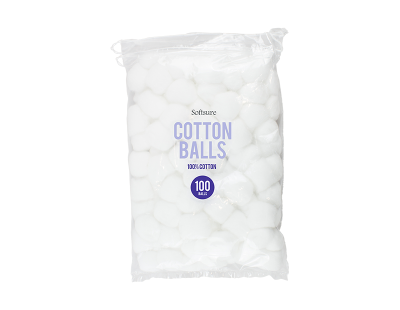 This bag of Cotton Wool Balls contains one hundred individual balls that are soft and gentle to skin.