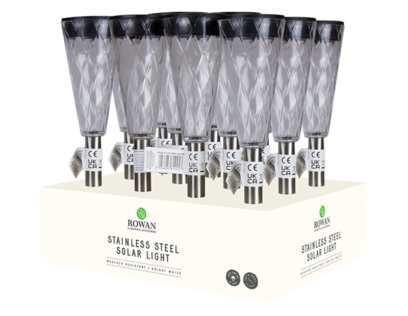 The outdoor light has a top solar panel for continuous charge throughout the day and is suitable for lawns and borders.