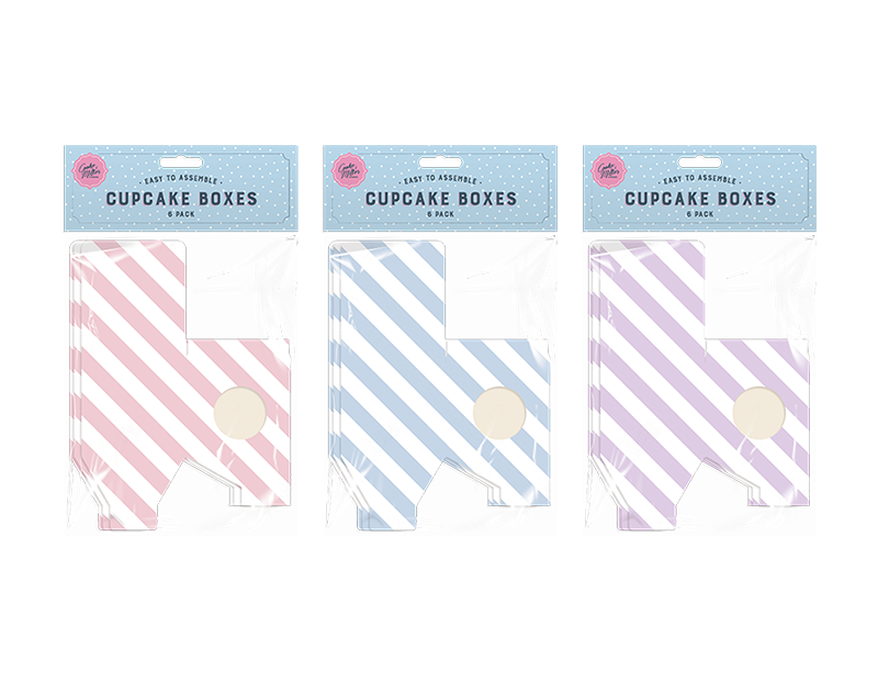 Each box features an on trend design with a pastel striped print. Each pack contains x6 flat packed cupcake boxes each with foldable edges making it easy to construct the box.