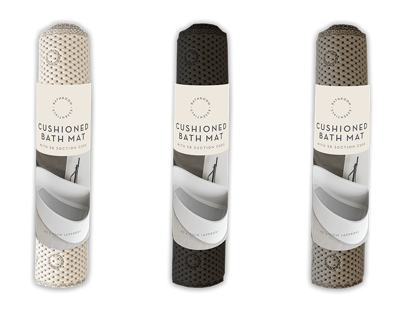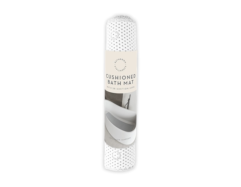 This cushioned bath mat is an everyday essential. Measuring (L) 90.5cm x (w) 43.5cm the cushioned bath mat has an ultra powerful grip with x 58 suctions cups to secure the mat in place.