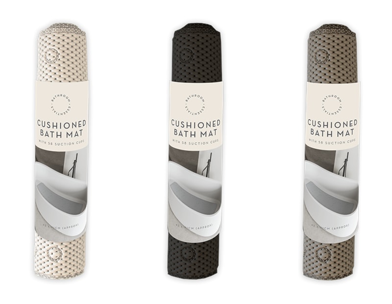 This cushioned bath mat is an everyday essential. Measuring (L) 90.5cm x (w) 43.5cm the cushioned bath mat has an ultra powerful grip with x 58 suctions cups to secure the mat in place.