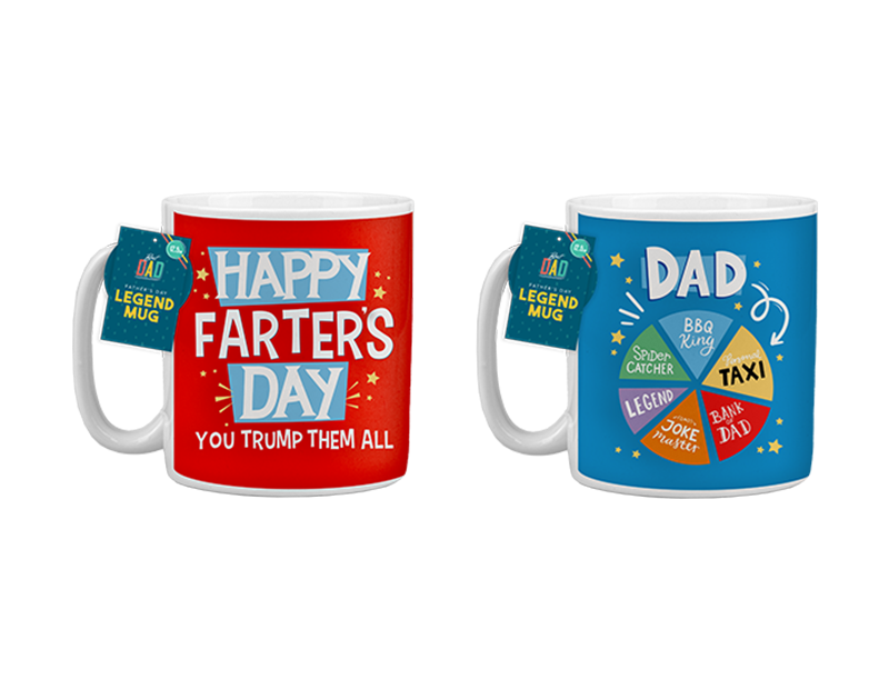 These giant mugs measure H12.5 x W16cm x 11cm diameter, with a large 800ml approx capacity, featuring a fun father's day print on the front and back.