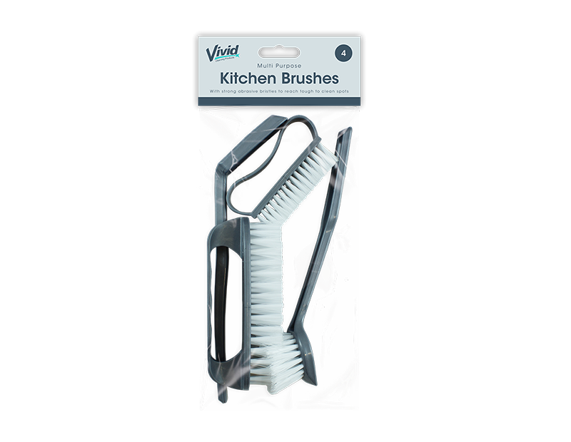 This pack of multipurpose Kitchen Brushes contains four individual brushes of assorted shapes and sizes.